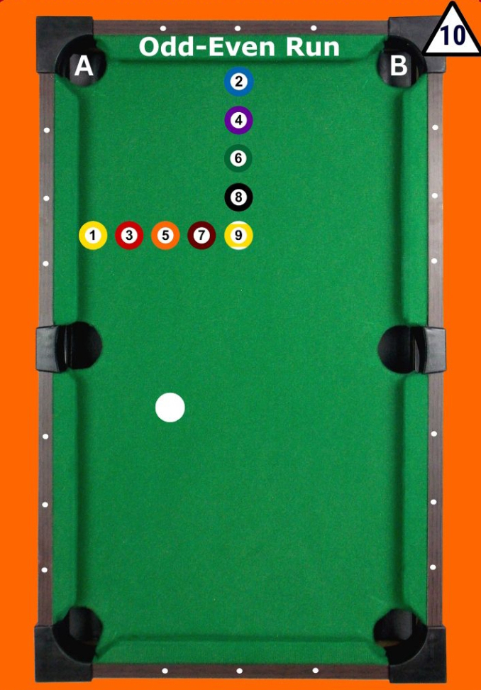 - Pocket the odd balls in the pocket marked A.
