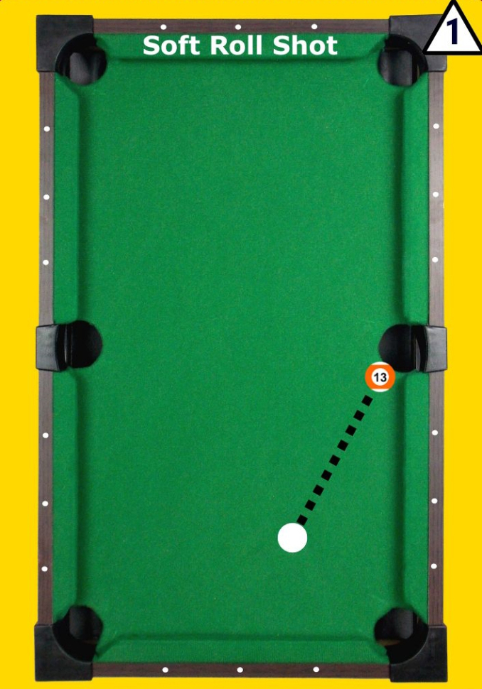 Hit the cue ball softly into the 13 ball to sink it in the side pocket.